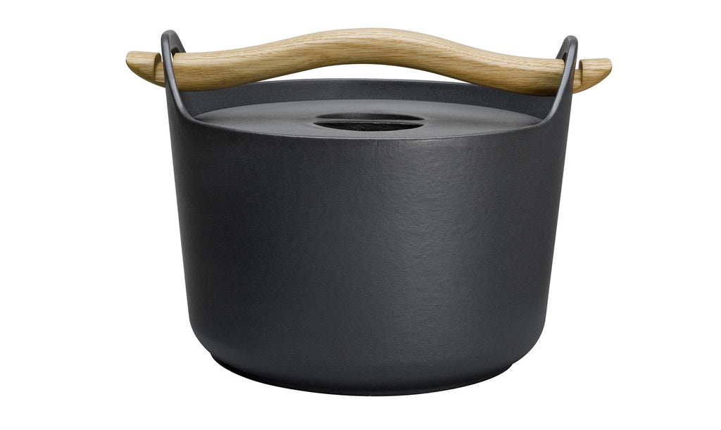 Timo Sarpaneva was inspired by his blacksmith grandfather when he created this timeless and ingenious design that is as functional in the kitchen as it is appealing on the dining room table. With a wooden handle, enameled interior and a cast-iron body, Sarpaneva's Cast Iron Casserole expresses an aesthetic so classic it was once celebrated on a Finnish postage stamp.