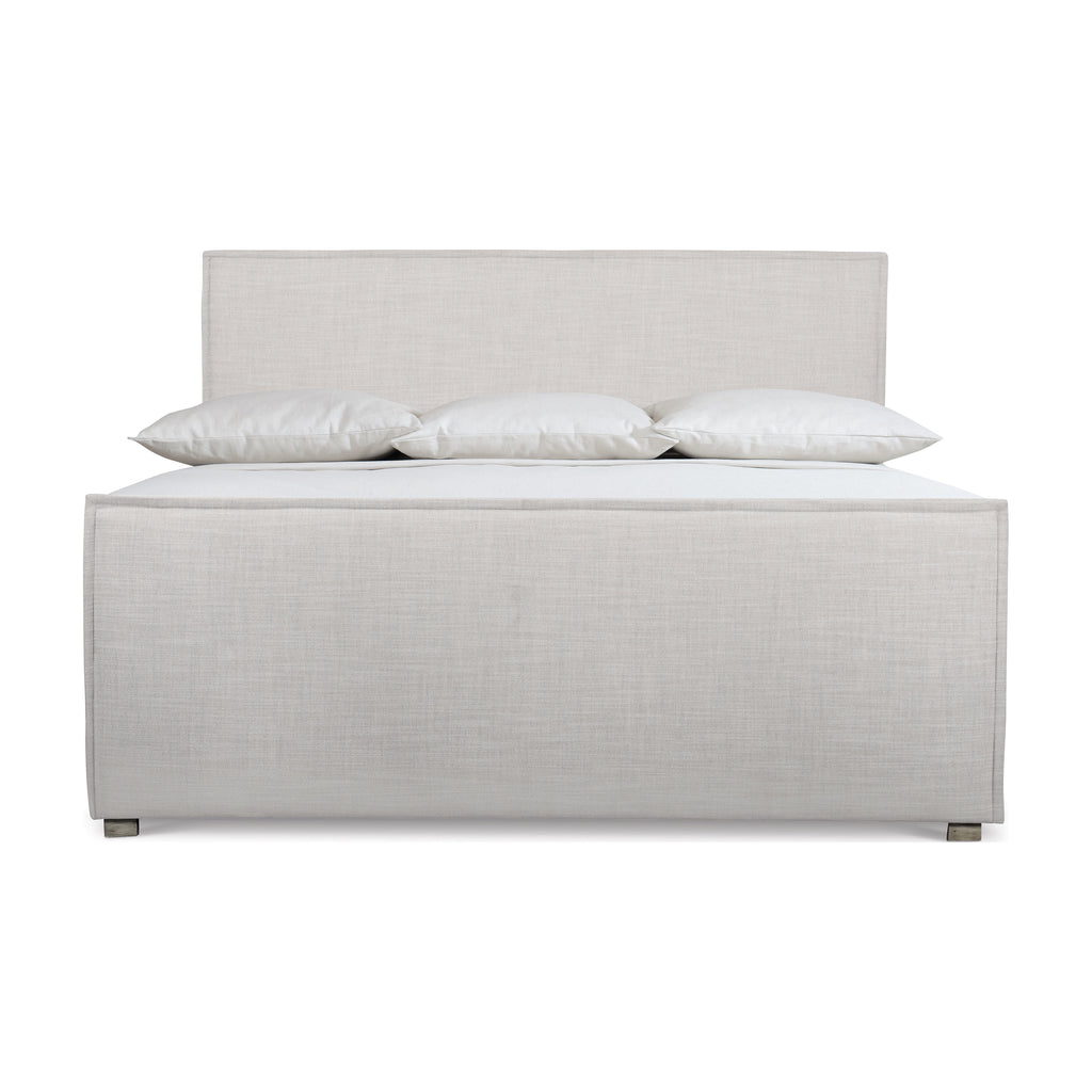 Blending a laid-back profile with a perfectly tailored silhouette, the upholstered Sawyer Bed from Bernhardt is a timeless, yet modern bed for any well-appointed bedroom. With an elegant and understated look, the Sawyer upholstered bed offers minimal ornamentation with a subtle mid-century style. Featuring an upholstered headboard, footboard, and side rails with stitched flanged edges this bed is waiting to be topped with the mattress and bedding of your choice for a sophisticated look.