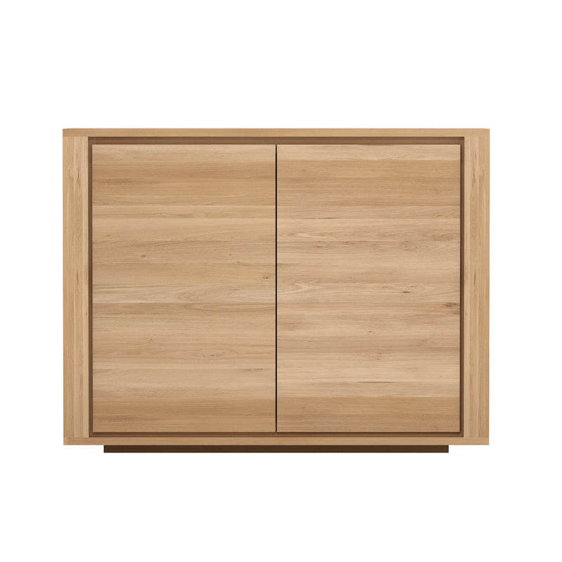 Simple and subtle can sometimes stand out the most. With the Shadow 2-Door Sideboard from Ethnicraft, pure, clean lines and straightforward style bring the finest in Nordic design to your home. Crafted from solid oak wood and coated in a hardwax oil finish to let the natural grain shine through, this sideboard offers compact size perfect for all of your storage needs in any space. Behind each of the two doors, a singular shelf allows you to stack dishes and drinkware, linens and table decor, or even various types of media and electronics. Station in the dining room to always have essentials close by and top with your favorite candleholders and vases of fine flowers for a welcomed and calming retreat.