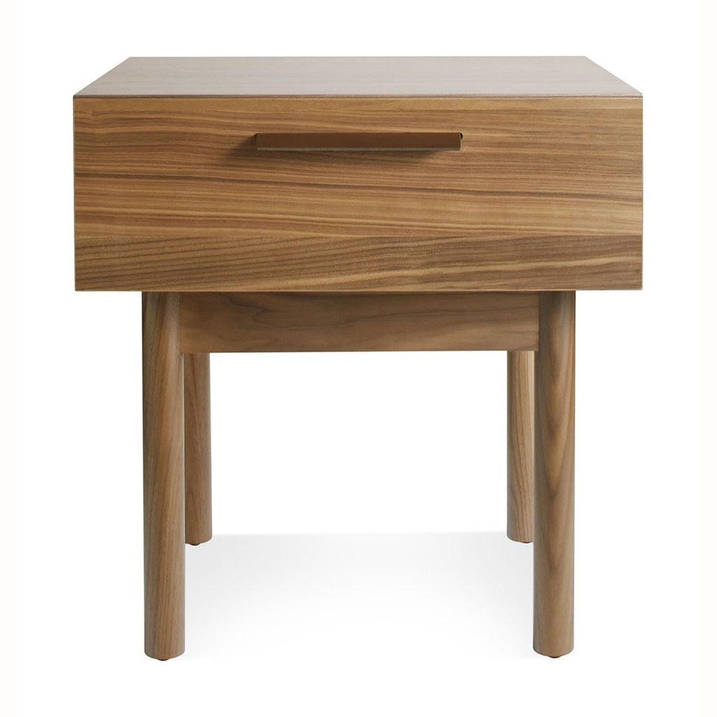 The Blu Dot Shale Bedside Table is as clean and compact as a modern table gets. Featuring solid wood construction and a supremely refined silhouette, Shale is both practical and stylish, with full grain leather pulls and ample storage in its roomy drawer. Shale is an elegant choice for bedroom, living room or dining room.