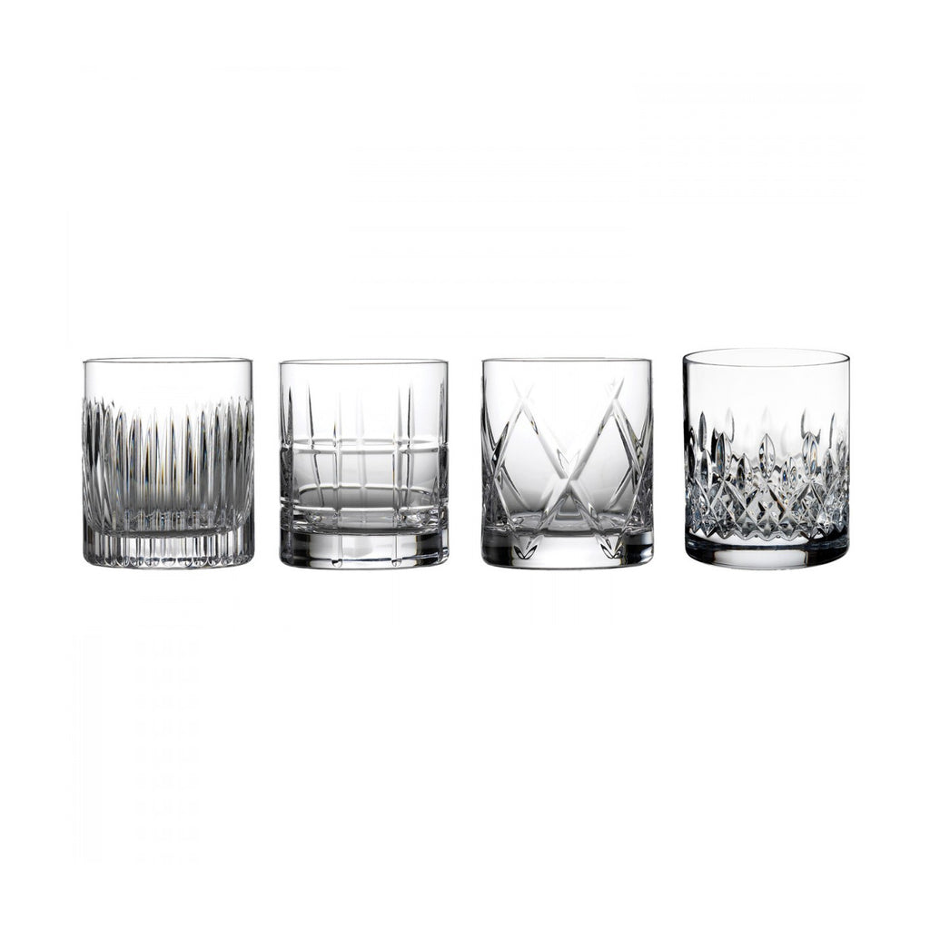 Ireland is a country of words. Spoken, written or sung, the Irish are famously verbose and social people known for their warmth, hospitality and generosity. It is the Irish spirit of togetherness, sharing and interaction that inspires our Waterford Short Stories Collection. Take a journey through the history of Ireland with the Short Stories Mixed Double Old Fashion Glass Set 12 OZ. Featuring the Aras, Cluin, Lismore and Olann patterns, this set combines function and beauty to share stories and drinks amongst friends.