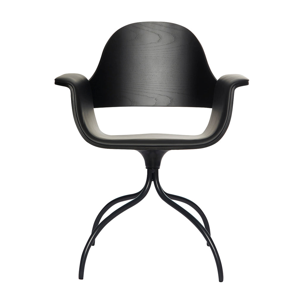 A best-selling icon of Spanish design, the Showtime 2025 Swivel Chair from BD Barcelona balances distinct personality with exceptional comfort. This versatile seat features a structural plywood shell—finished in natural or dyed beech—that cradles the body with soft, upholstered cushions. Supported by a central tubular iron and aluminum base with a smooth rotation system, it offers a stable yet dynamic seating experience. Whether chosen with a high or low backrest, the interplay between the rigid exterior and the inviting interior creates a sophisticated contrast suitable for any dining room or meeting space.