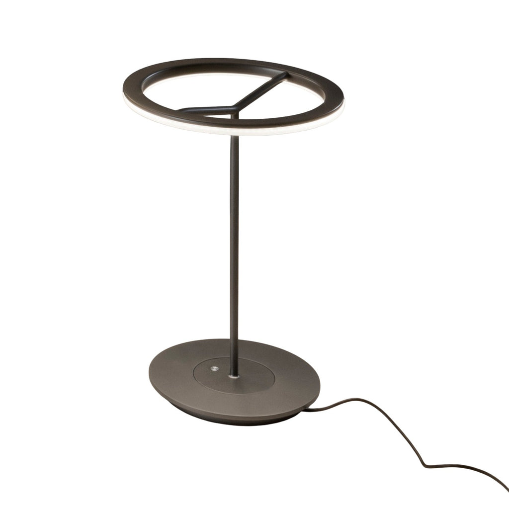 This lamp is named after everything it does without, particularly if it is used without a shade. Commissioned to Antoni Arola in order to transform it into the new basic Santa & Cole lamp in the wake of the LED revolution, it manages to fuse simplicity and technology in order, leaving a luminous ring elegantly hanging in the air. The light can be dimmed using the switch housed in the base, and the larger model on full power can broadly light up any work surface.