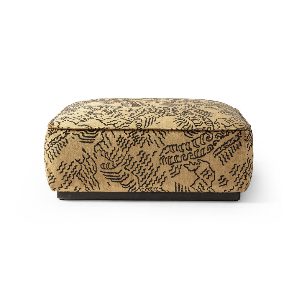 Elevate your favorite living or lounge space with the Sinclair Square Ottoman from Four Hands. Upholstered in a stunning, one-of-a-kind fabric, this ottoman adds a touch of global influence to any room, while its solid wood base adds a touch of warmth and durability. Versatile and eye-catching, this ottoman is a must-have for any tasteful home.