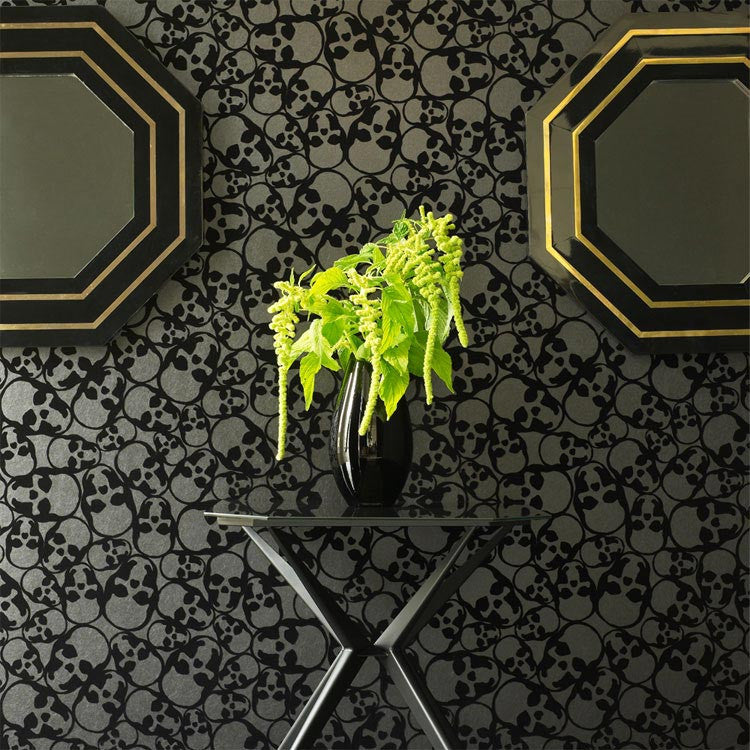 Barbara Hulanicki’s striking skull wallpaper is the perfect choice for those with a taste for the mischievous and the macabre. Grey skulls of several different sizes sit piled up against one another, but this wallpaper is far from sombre. A must for those who enjoy a rock and roll or gothic flavor.