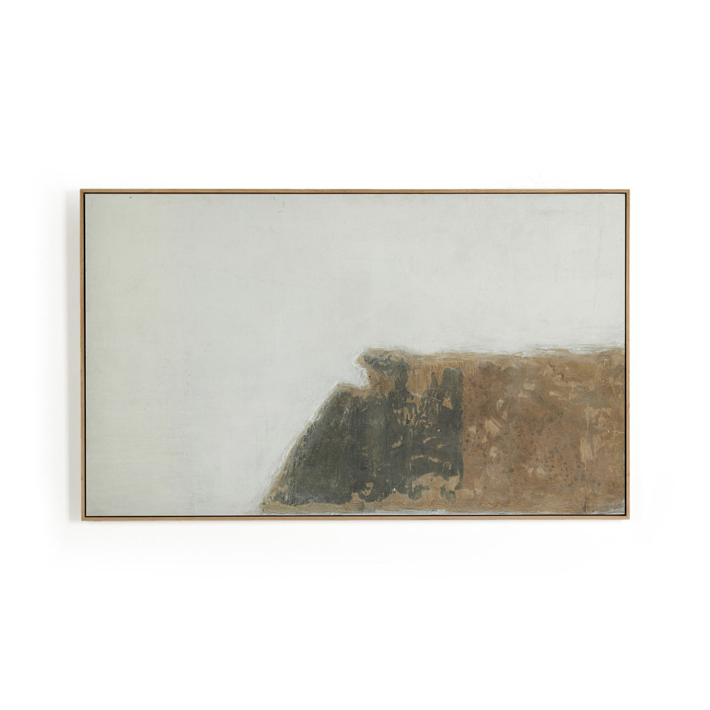 Austin-based painter and sculptor Paul Meyer draws on a fascination with construction, using mixed media to elevate and texturize his paintings. "Sonora" is a texture-enhanced abstract piece, handmade in Austin, Texas, and presented in a vertical grain white oak floater frame.