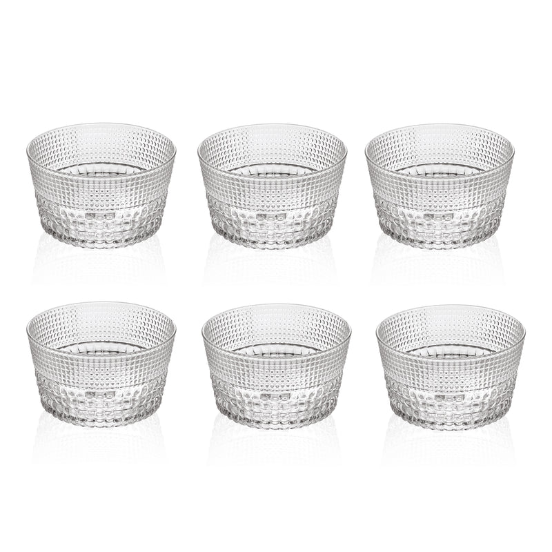 The Speedy Bowl (Set of 6) from IVV includes six blown glass cups in a stunning array of colors: amethyst, acid green, amber, turquoise, pink, and indigo blue. Each cup features a sophisticated double optic pattern that adds depth and visual intrigue. Dishwasher safe for convenience, these cups maintain their clarity and intricate design best when hand washed, making them a refined addition to any glassware collection.