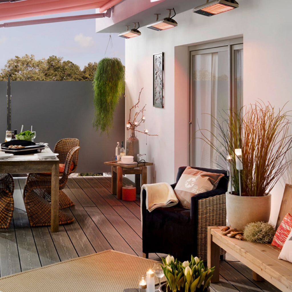 - Inviting & Cosy: Other radiant heaters use light tubes to produce heat as a by-product – at HEATSCOPE® we exclusively use innovative carbon technology: two carbon spirals are powered with an electric current, they begin to glow and produce a particularly pleasant warmth