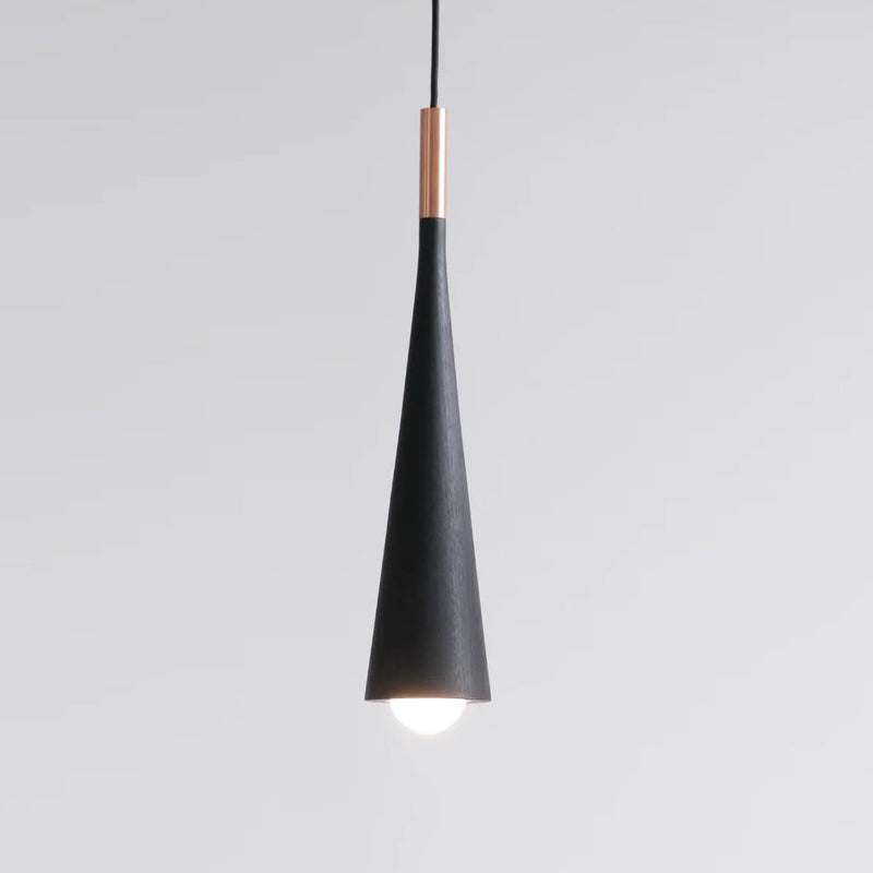 The Stem Pendant Light stays true to hollis+morris' exploration of brushed metal, solid white oak and walnut. The conical solid wood spire supports both leaves and flowering fruit in the form of hand-blown frosted glass, continuing nature’s story of vitality and exuberance. This pendant, secured with a brass, copper or stainless base will serve any environment looking to benefit from the glowing energy hidden within soft, white blooms.