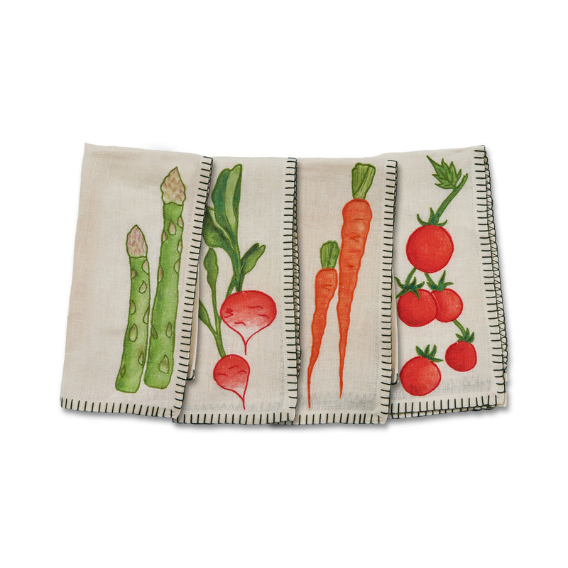 Introduce a touch of Renaissance charm to your dining table with the Still Life Embroidered Linen Napkin (Set of 4) from Misette. Crafted from 100% linen, these exquisite napkins feature intricate fruit and vegetable embroidery for playful addition to your year-round tabletop design. Machine washable and presented in a luxurious dust bag, these napkins are both practical and memorable.