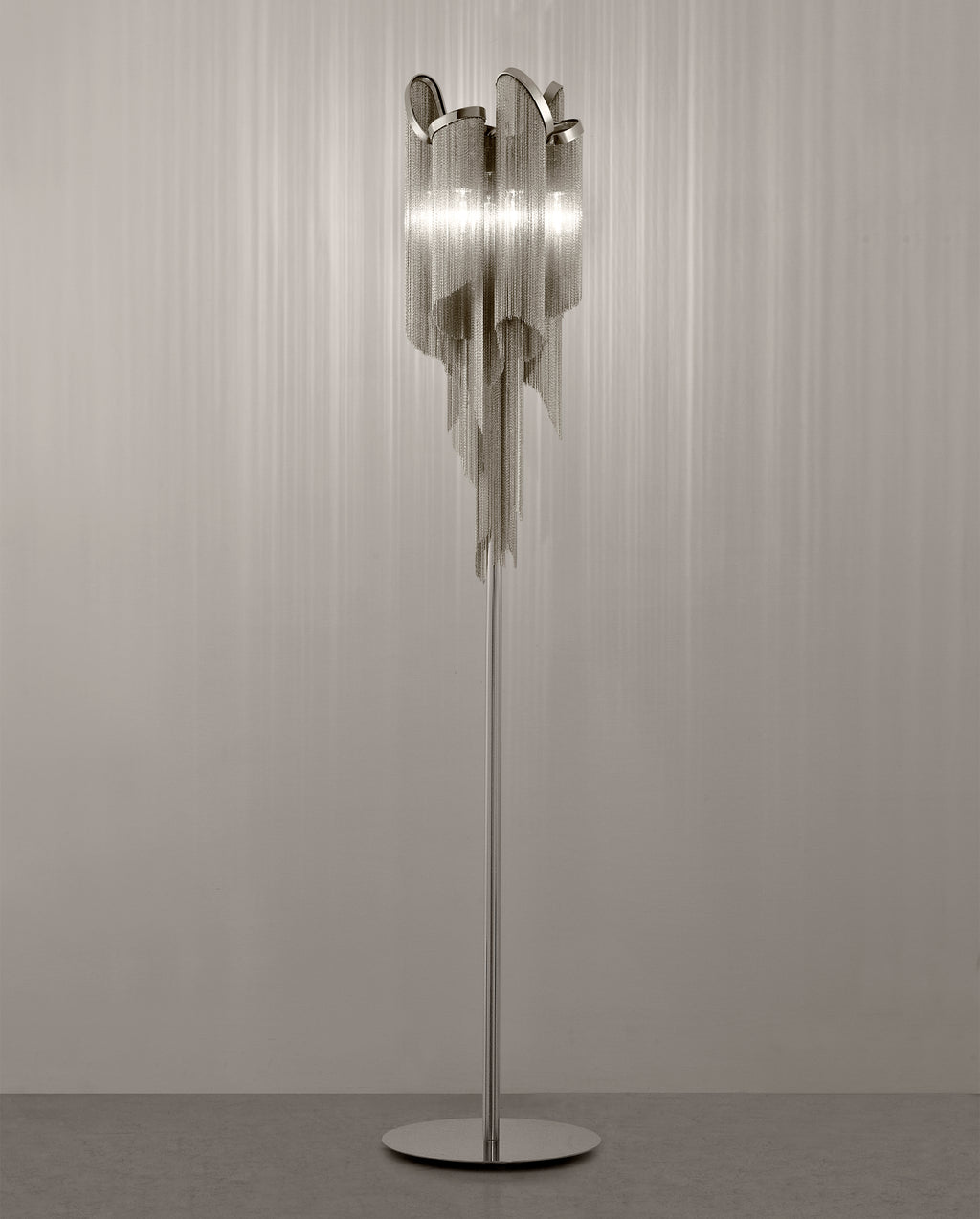 - Cascading tiers of metal chain