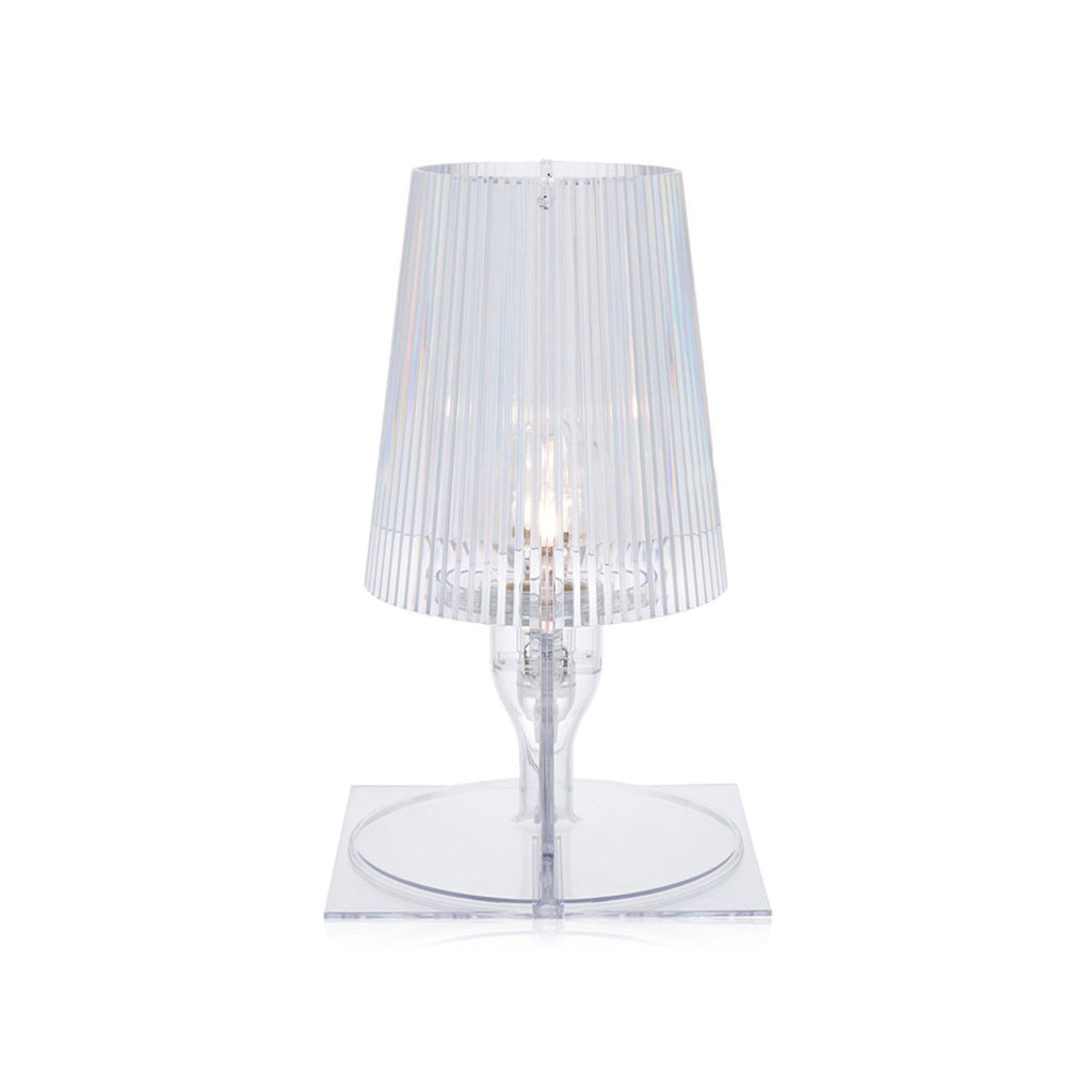 Transform your tabletop with the Take Table Lamp from Kartell. Designed by Ferruccio Laviani, this lamp features molded polycarbonate sections that beautifully come together to create a full, eye-catching form. With its sparkling rays of light and a stylish circle-on-square base, this lamp adds a touch of luxury and sophistication to any space.
