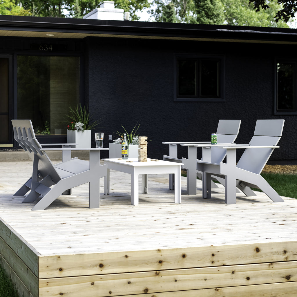 This outdoor seating set features the Lollygagger sofa, two Tall Lollygagger Lounge Chairs and the Lollygagger Cocktail Rectangle 42" Table. The Tall Lollygagger sofa is designed based on the Tall Lollygagger Lounge Chair but is meant to hold two adults. The seat and back angles work precisely together to create a synonymous symmetry of comfort for both loungers. This outdoor couch also includes an integrated bottle opener beneath the right arm. This bundle also includes two Tall Lollygagger Lounges, so you have a seat for everyone. Whether you are gathering around the Lollygagger Cocktail Rectangle 42” Table for good food or good conversation, this bundle sets you up for a wonderful time appreciating the outdoors.