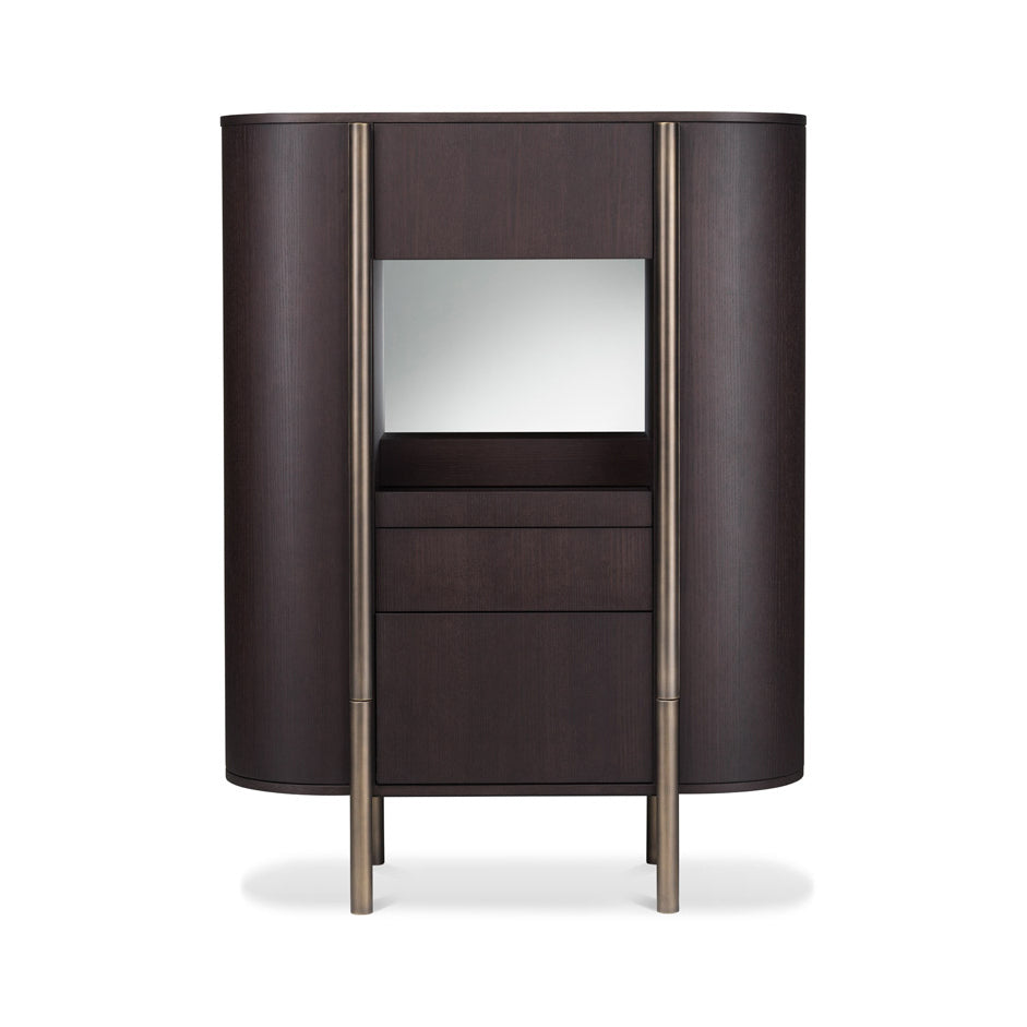 Elevate your hosting game with the Tarantino Bar Cabinet from Ghidini 1961. Crafted from premium wood veneer and accented with sleek chrome details, this cabinet exudes modern elegance. Its spacious interior and sturdy construction make it the perfect home for your glassware and liquor collection. Impress your guests with this exclusive piece.