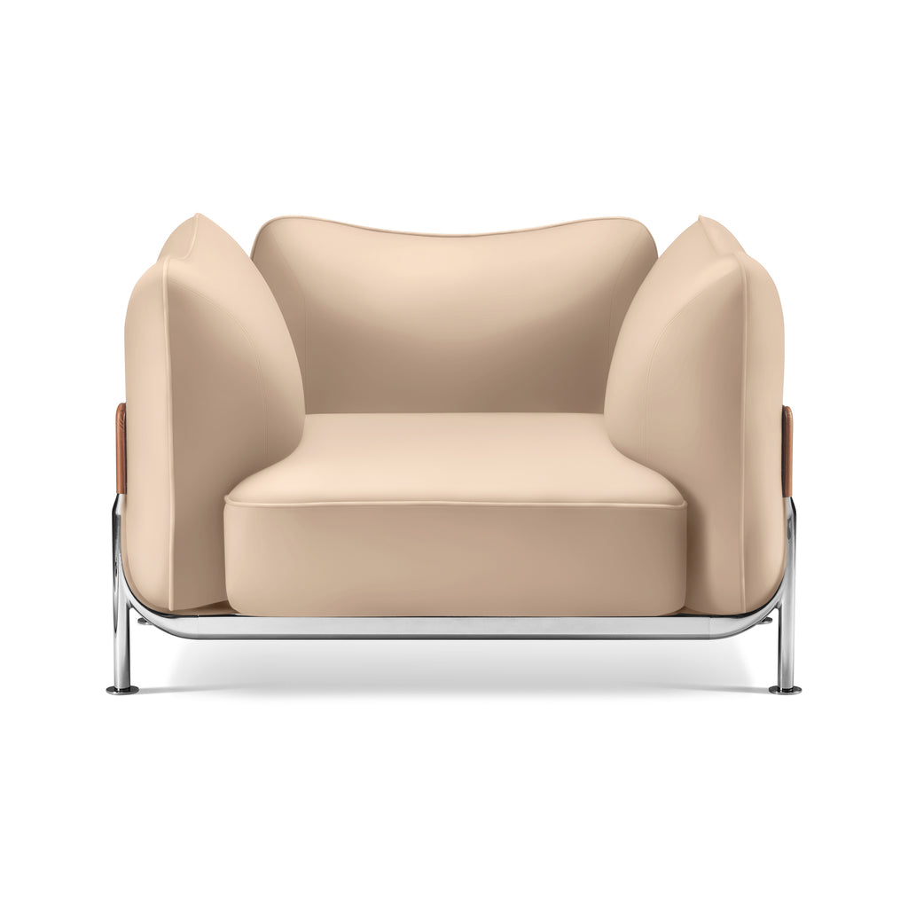 - Available in Bonsai 093 fabric or Aida 1620 Sand leather color with Chrome frame finish