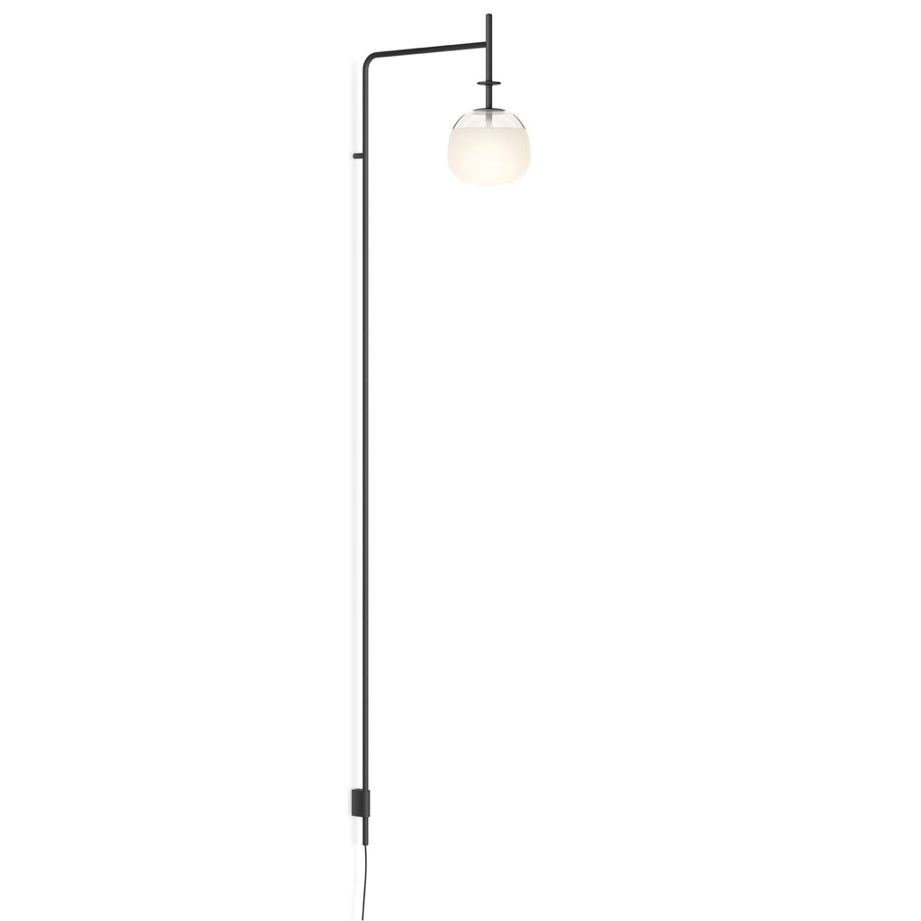Wall lamp composed of a stylized profile attached to the wall and topped by a blown glass diffuser that gives the piece a delicate image. Tempo lamps are a design by Lievore Altherr. Wall lamps that affirm their presence in vertical planes. All inspired by degrees of luminance and the interplay between opacity, translucence, and transparency.
