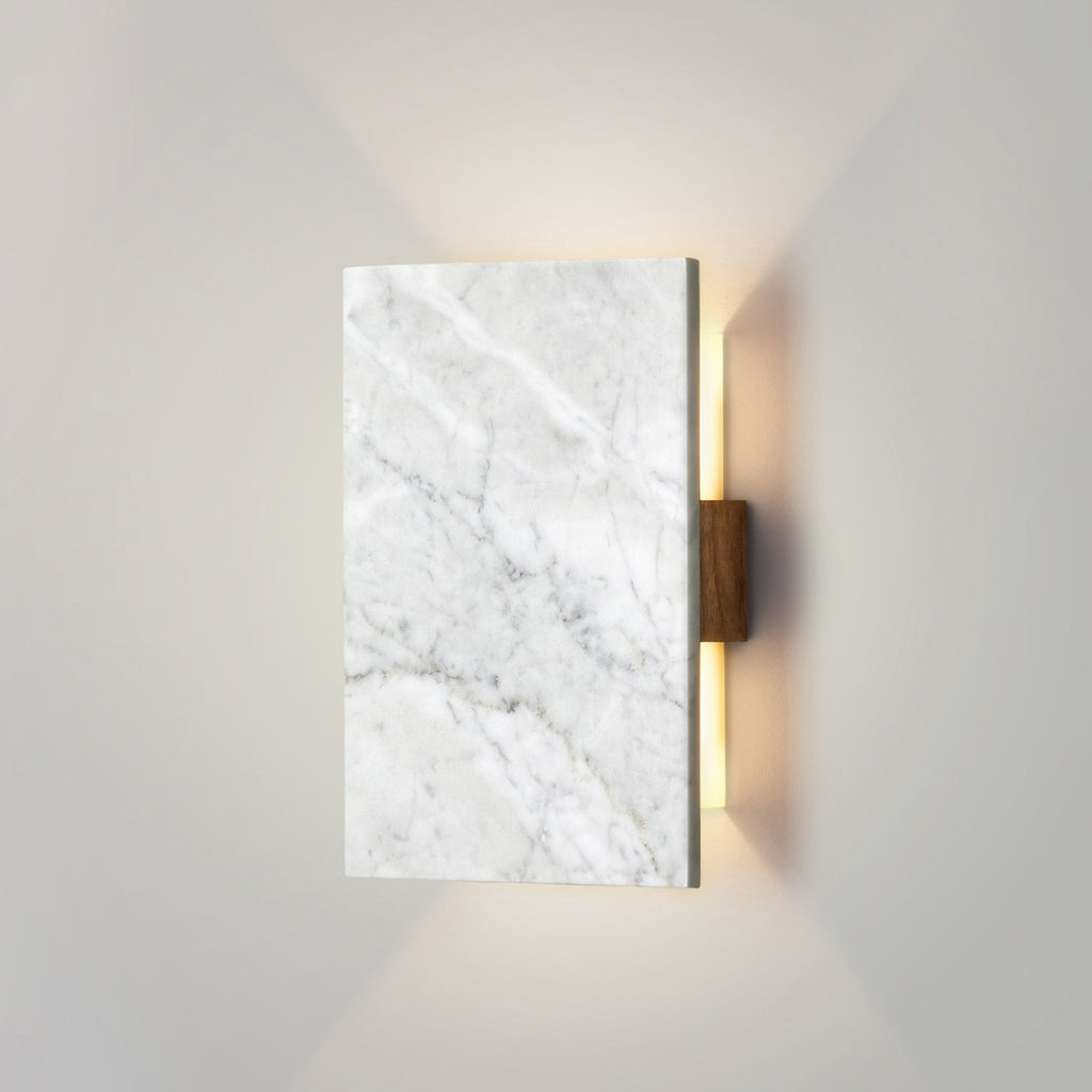 Featuring a minimalist, contemporary design within a simple rectangular panel, the Tersus Wall Light from Cerno is a beautifully composed luminary showcasing the beauty of natural materials. Designed by Nick Sheridan, this wall light features options made of wood, stone, metal veneer, and polymer, and is perfect for casting a long-reaching light on the wall on which its mounted. Handmade perfection, this sconce is ideal for mounting in a series, or for accenting any room. Equipped with powerful LED lighting, this fixture is damp rated and perfect for using in a bathroom or well-covered outdoor area.