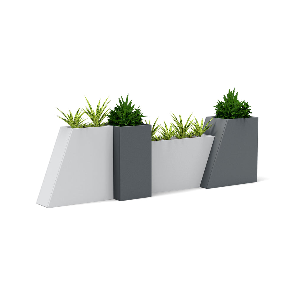 The Tessellate Planter Bundle 2 features 4 Tessellate Planters that you can use to create a modular and expandable planter system. Designed by Ive Haugeland, founder and Landscape Architect at Marin County-based Shades of Green, Tessellate arrangements make a design statement. This bundle includes 3 tessellate styles in the standard 12” width and Jut and Slope Tessellate planters also come in two different height options. Use this planter bundle to define a space, add unique lines, and of course, add a pop of color. With false bottoms on the Tessellate Squares and Rectangles, these planters allow you to customize the planting height, choosing either the full depth for deeper-rooted trees and shrubs or half the depth for more shallow-rooted plants.