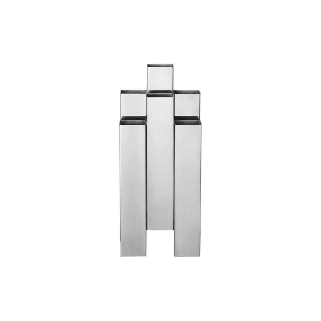 A stunning piece of functional sculpture, the Tessera Vase from Ferm Living brings a striking, geometric character to the home. This beautiful vase is crafted from stainless steel with a brilliant, mirror-polished finish that catches and reflects light, adding a dynamic presence to any space. Designed with a thoughtful balance of form and function, it’s perfect for holding a beautiful floral arrangement or for standing alone as an art object in its own right. A fusion of bold form and modern elegance, it's a sophisticated centerpiece for a shelf, dining table, or sideboard.
