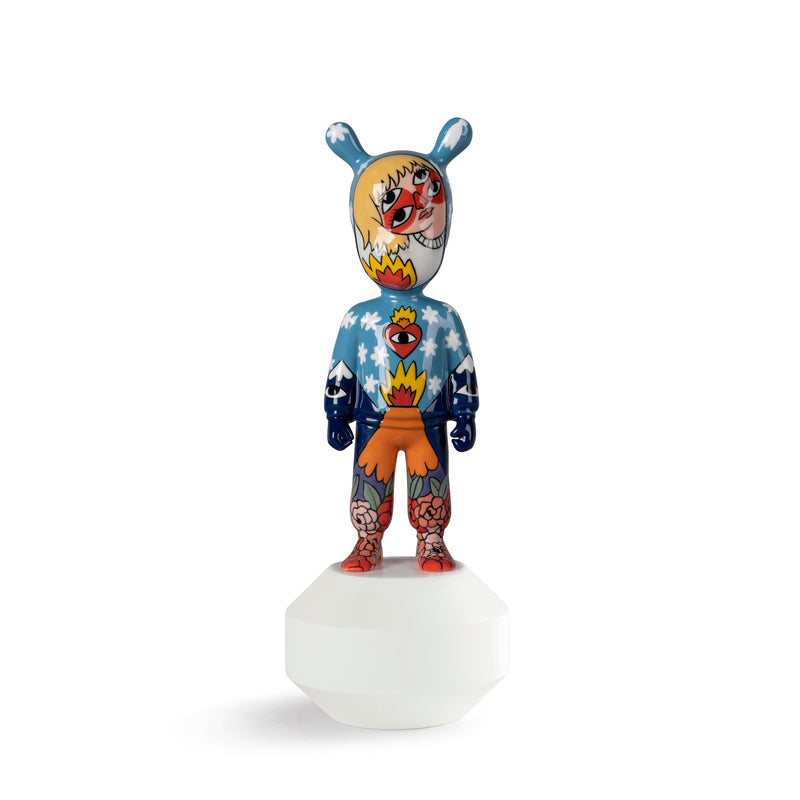 Prestigious designer Ricardo Cavolo brings his masterful touch to The Guest Figurine from Lladro. Handcrafted from porcelain in Spain, this sculpture features Ricardo's unmistakable, eclectic style that has the whole world taking note. Inspired by his son, this piece depicts a world with mountains, flowers, castles, and a universe of stars. Decorated with intense colors and bright patterns, this piece brings noteworthy design to your home or office space. Whether adding to your collection or just starting out, this fine piece is sure to delight and inspire the artist in you and the child in all.