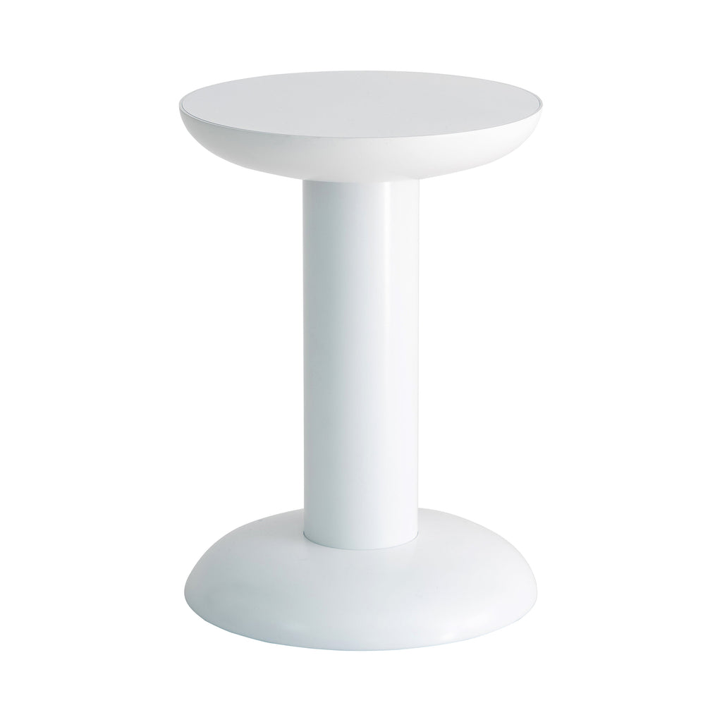 The Thing Side Table from Raawii is a smooth contemporary design optimizing Raawii’s eye for proportion and design, as well as respect for people and society. Designed by George Sowden and made from recycled aluminum, it features a rounded base and top separated by a central cylinder, with a flat-cut surface offering space for small accessories or seating as a stool. The design is engineered for flat-packed shipping and arrives with all the hardware and tools needed to assemble it, minimizing environmental impact while creating a sense of ownership when it is constructed.