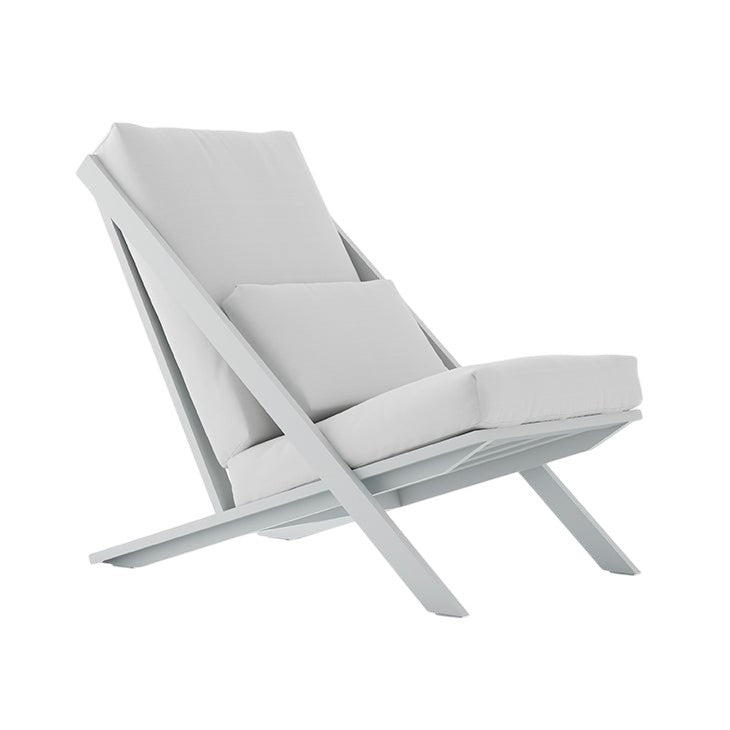The TIMELESS relax club chair, along with the relax pouf, stands out for its elegance, originality and personality. It is a designer chair made of welded aluminum profiles available in different powder-coated colors: the sober classics, such as white, anthracite, sand, green, cement gray, greyish blue, bronze … as well as more daring tones: reddish-orange, orange-brown, wine red, or beige red. When combined with the various upholstery options, these colors can bring distinction and freshness to any outdoor space.