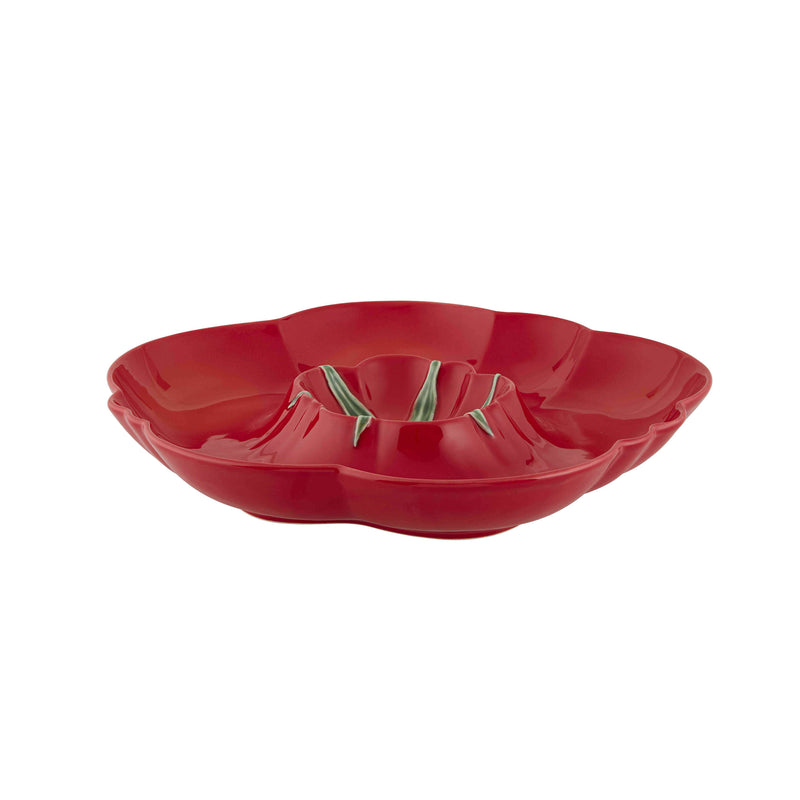 A joyful expression of heritage craft, the Tomato Appetizers Plate from Bordallo Pinheiro brings a touch of the garden to your table. This stunning plate is meticulously shaped to resemble a cluster of ripe tomatoes. Each detail is brought to life through careful, vibrant hand-painting, creating a whimsical and artistic serving piece. A fusion of playful design and meticulous artistry, it's a conversation-starting piece for any gathering.