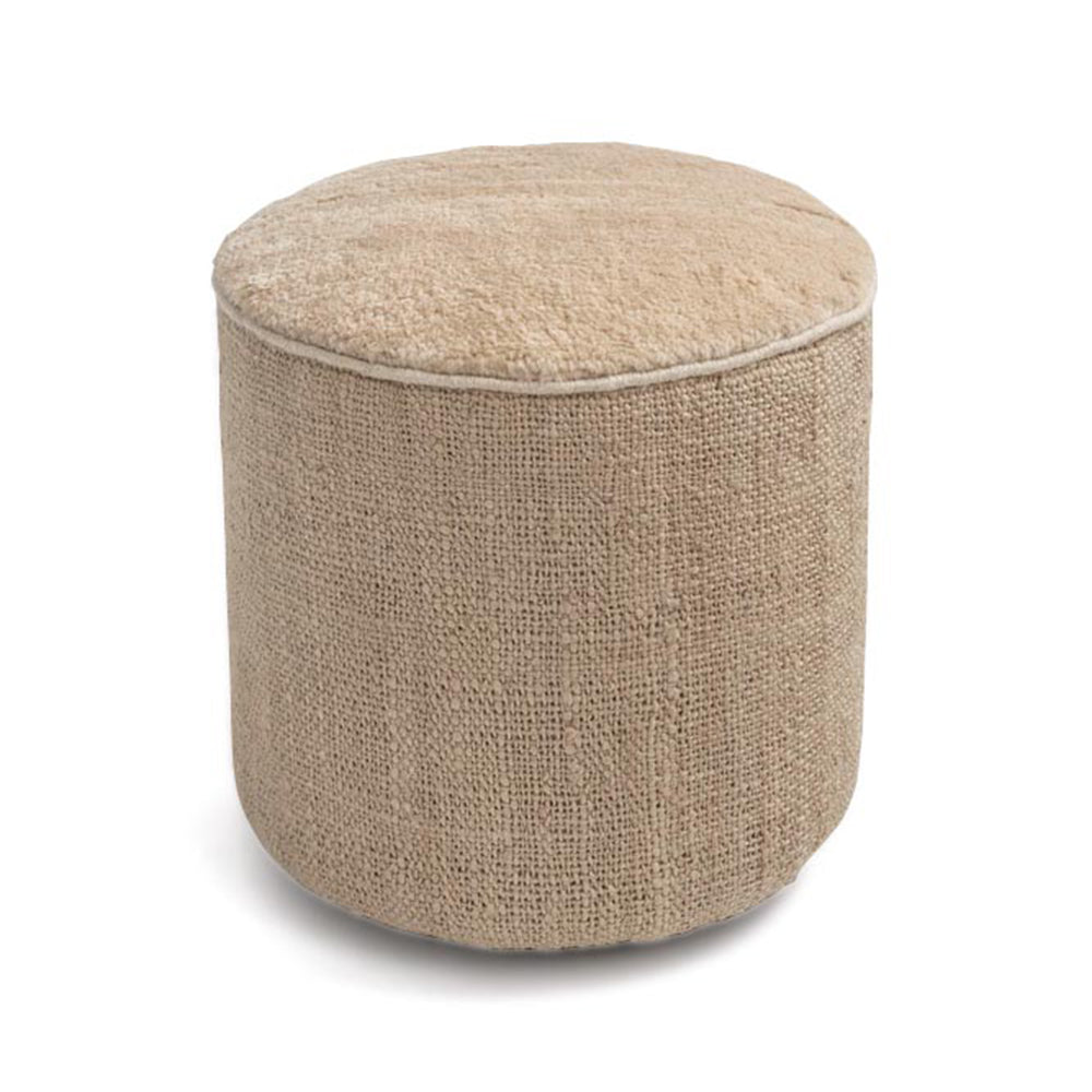 The sides of the Tres Persian Pouf Vegetal are made with the Tres Vegetal rug and the seat with the Persian Colors reedited in natural matte color.