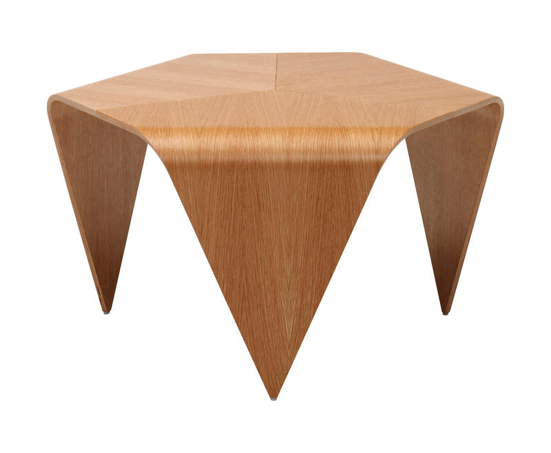 This incredibly distinctive table is formed from three sheets of pressed birch veneer. The hexagonal table top is supported by three triangular legs. The seams between the pieces create a beautiful pattern on the table top. Lightweight and easy to transport, the Trienna Table is elegant by itself or as a fine centrepiece for creating exciting combinations.