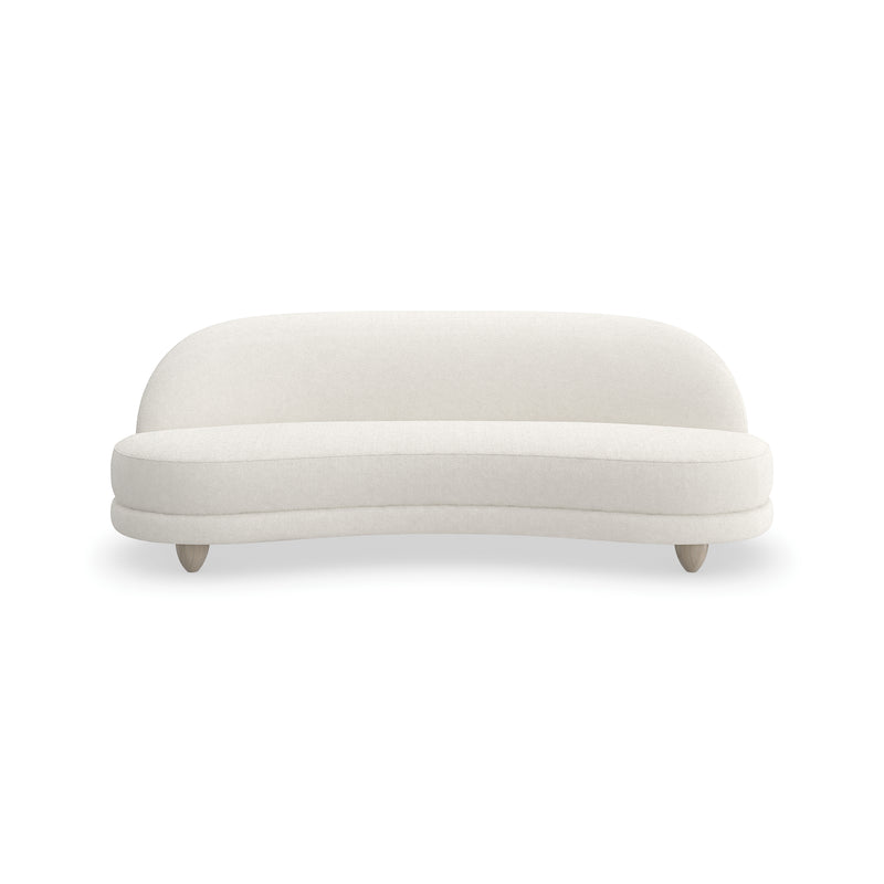 With its sleek, serpentine shape, the Tulum Sofa from Caracole introduces a fluid, biomorphic form to modern living interiors. This stunning three-seater sofa is dressed in a beautiful, two-tone boucle fabric, its curvaceous silhouette inviting conversation and luxe comfort. The design rests on softly rounded wood feet in a sand-colored finish, adding to its organic yet elegant style aesthetic. A fusion of sensuous curves and inviting texture, it’s a captivating centerpiece for any sophisticated space.
