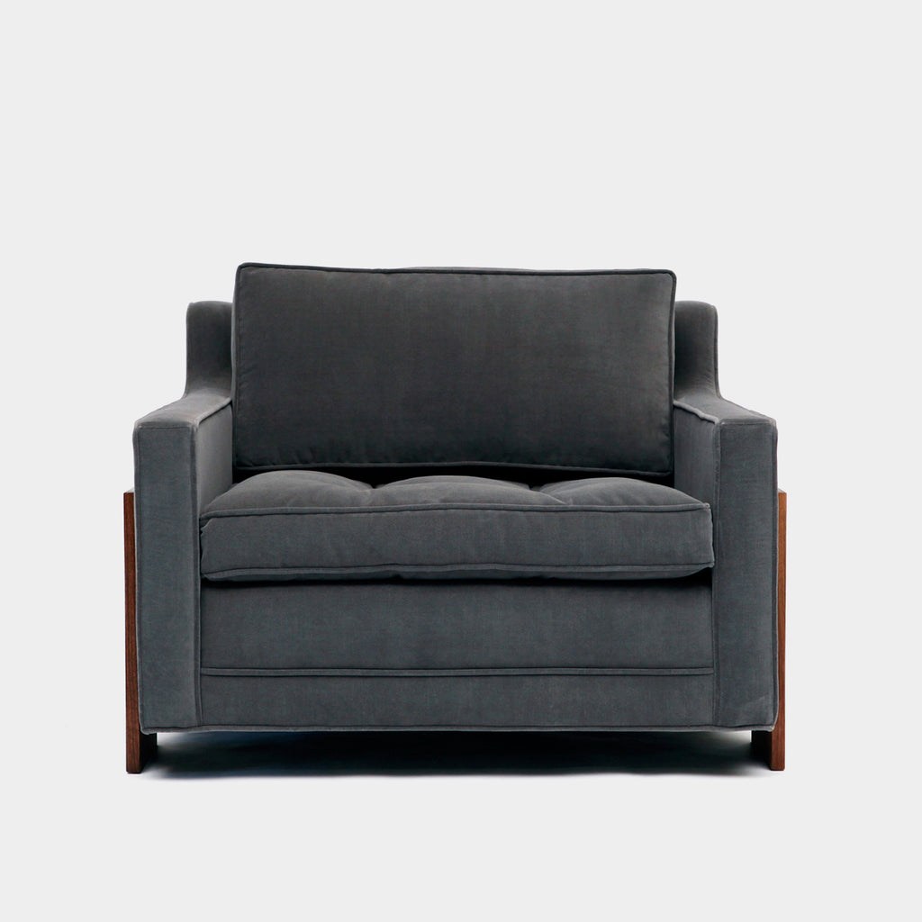 ARTLESS Up Solutions 1 Seater is a clean, low, and wide modern club chair. The 1 Seater is comfortable and well crafted, designed to look especially good with solid Walnut plank legs flanking its sides. The Seater’s good looks are complemented by the comfort of its down proof ticking cushions offering plenty of depth. All ARTLESS Up Solutions are individually bench built in Los Angeles. Kiln-dried hardwood frame with double dowel joinery and corner blocks, sinuous wire springs; Down proof ticking with Trillium (down alternative).
