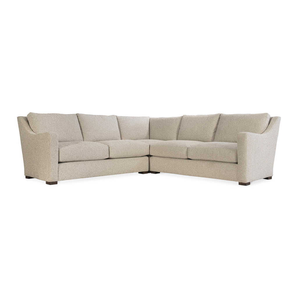 The Ventura Sectional from Bernhardt harmoniously blends clean lines with graceful curves, merging modern and traditional design elements. Its arms gently swoop from a tall back before extending straight to the floor, creating an elegant silhouette. Deep seat cushions and box-edge bordered back pillows ensure exceptional comfort, making this sectional a refined centerpiece for any living space.