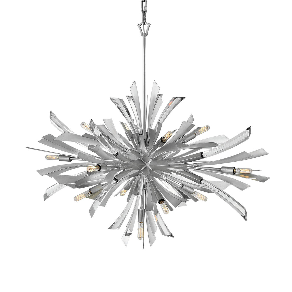 Vida's modern design bursts with a flourishing style that is both highly dramatic and finely sculpted. A statement piece with crystal accents and unique canopy detailing, Vida injects a thrilling dash of contemporary inspiration to its surroundings in Glacial finish.