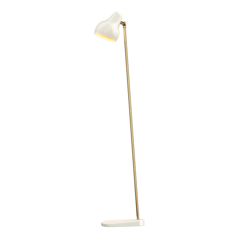 The VL38 family is born of functionalism. The light head is organically shaped, painted white and obliquely angled. The light arm, which is made of brass, features a small hinge on top to allow minute adjustment of the light head. The luminaire provides accurate downward light, making it ideal for use as a work light or as more general illumination.