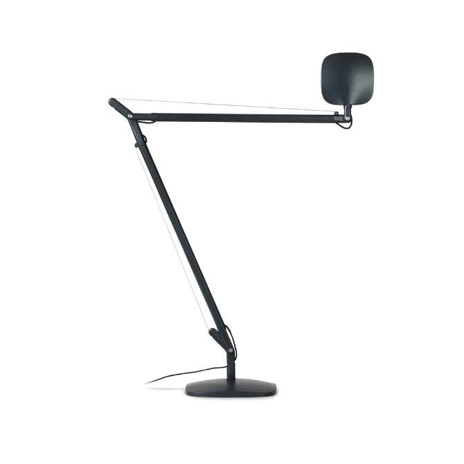 The tension for the hidden-spring balancing mechanisms is provided by steel wires coated in a colored polymer that gives this lamp sophisticated furnishing accessory style. Alternating rationality and form, cylinders and spherical sections carved out by flat surfaces and soft curves are characteristics that make this lamp suitable for any setting, with all the understatement and practicality typical of work tools while adding a pleasing little decorative accent.
