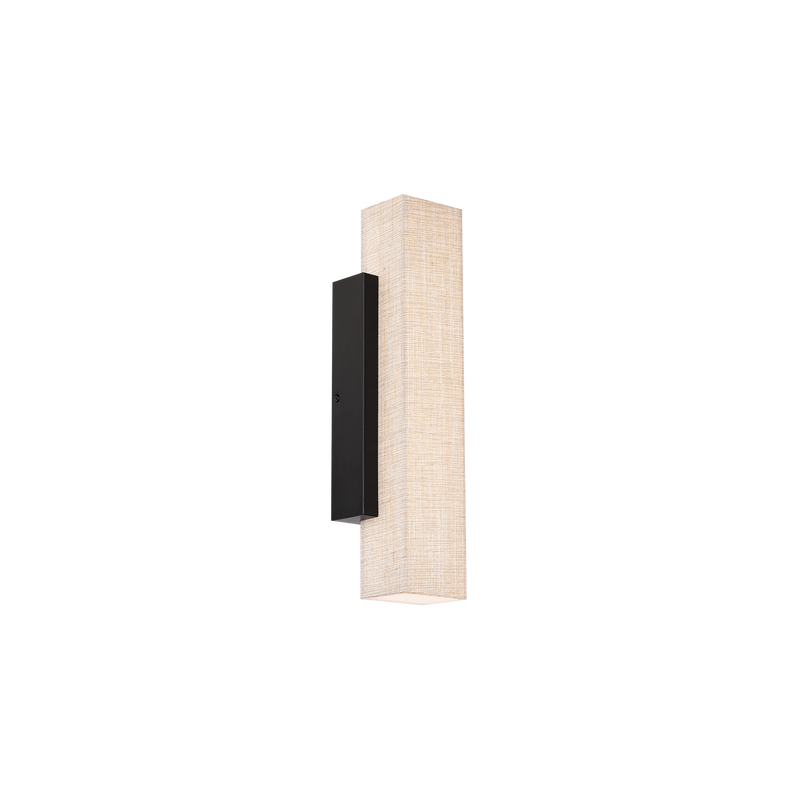 The Volga LED Wall Sconce from dweLED combines a slender profile with rich materials to enhance any exterior space. Its geometric metal backplate, mountable vertically or upside down, provides a striking color contrast to the elegant rectangular fabric diffuser. Concealing the LED source behind an acrylic diffuser, it eliminates glare while casting a soft ambient glow that gently illuminates surrounding walls. This sophisticated fixture balances style and function for refined interior lighting.
