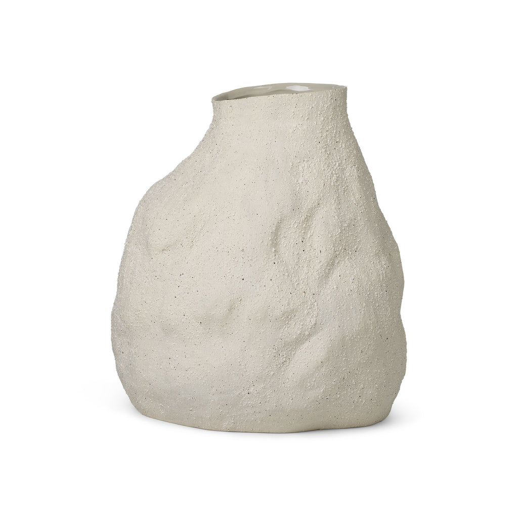 With its fluid form and textured surface evoking volcanic rock, the Vulca Vase from Ferm Living is an eye-catching addition to your stylish home. An off-white stony glaze highlights the distinctive tiny grains in the stoneware for a truly sophisticated look, perfect for displaying your favorite flowers or as a stunning statement piece on its own.