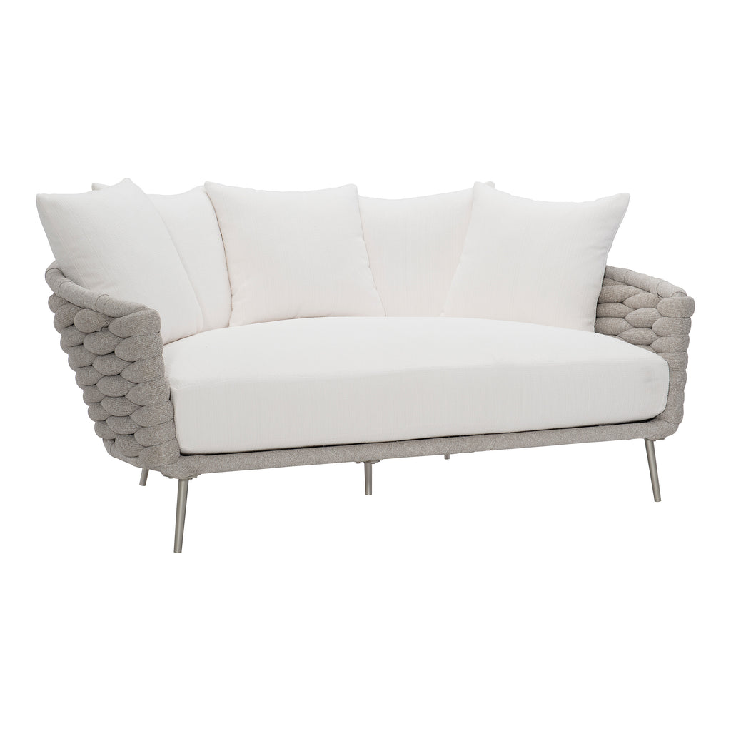 Experience the finest in outdoor living with the Bernhardt Exteriors Wailea Daybed. This modern daybed features a unique, overstuffed sock weave in a contemporary Nordic Gray. The soft-knit, all-weather material wraps around an aluminum frame to provide maximum comfort and support. Plush fiber and HR foam pillows offer extra cushioning for your enjoyment, while exposed legs give it a distinct look. With its combination of comfort and style, this luxurious daybed will stand up to any weather while giving you relaxation that only comes from quality craftsmanship.