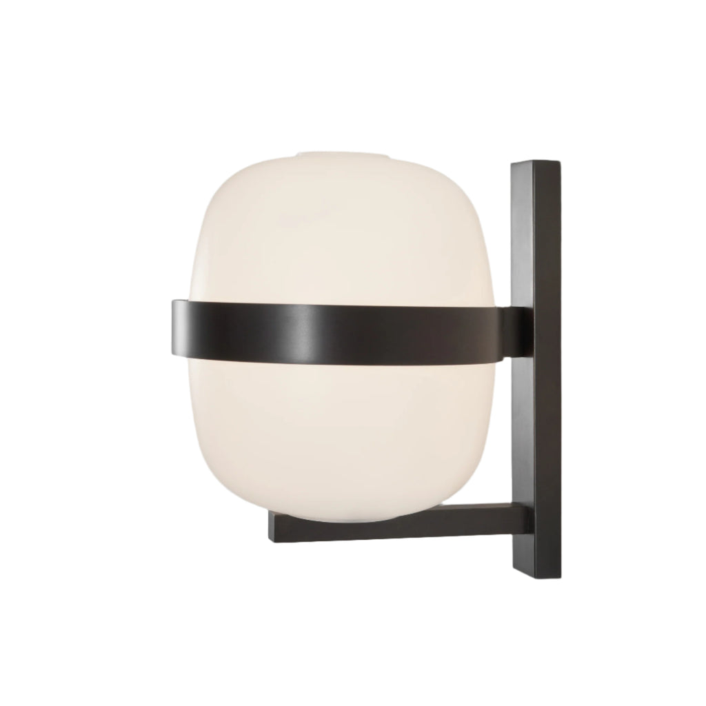 Designed in the same year as the CESTA and CESTITA lamps, this iconic wall lamp from the city of Barcelona has the same opal globe shape and formal elegance. A perfect balance through delicate, understated lighting. The structure to mount the lamp on the wall comprises a metal arm and ring that surround and support the globe. With its delicate, unostentatious light, the Wally wall lamp is perfectly at one with its surroundings.