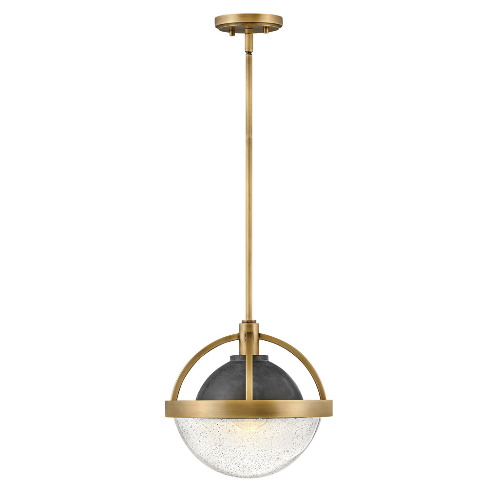 Watson merges mid-century and modern to provide a breath of fresh air to any interior. Its soft, clear seedy glass globe is held within a two-tone frame in Heritage Brass or Slate Bronze, providing seamless transition for use throughout the home. Globe style lamps recommended.