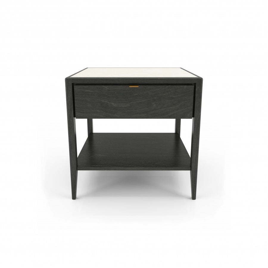 Indulge in luxurious design with the Winston 1 Drawer Nightstand from Huppe. Made of solid birch and selected birch veneer, this nightstand is finished on all four sides for a sleek look. The spacious drawer and lower shelf offer ample storage, while the choice of bronze handle and acid etched lacquered glass top add a touch of elegance to your bedroom.