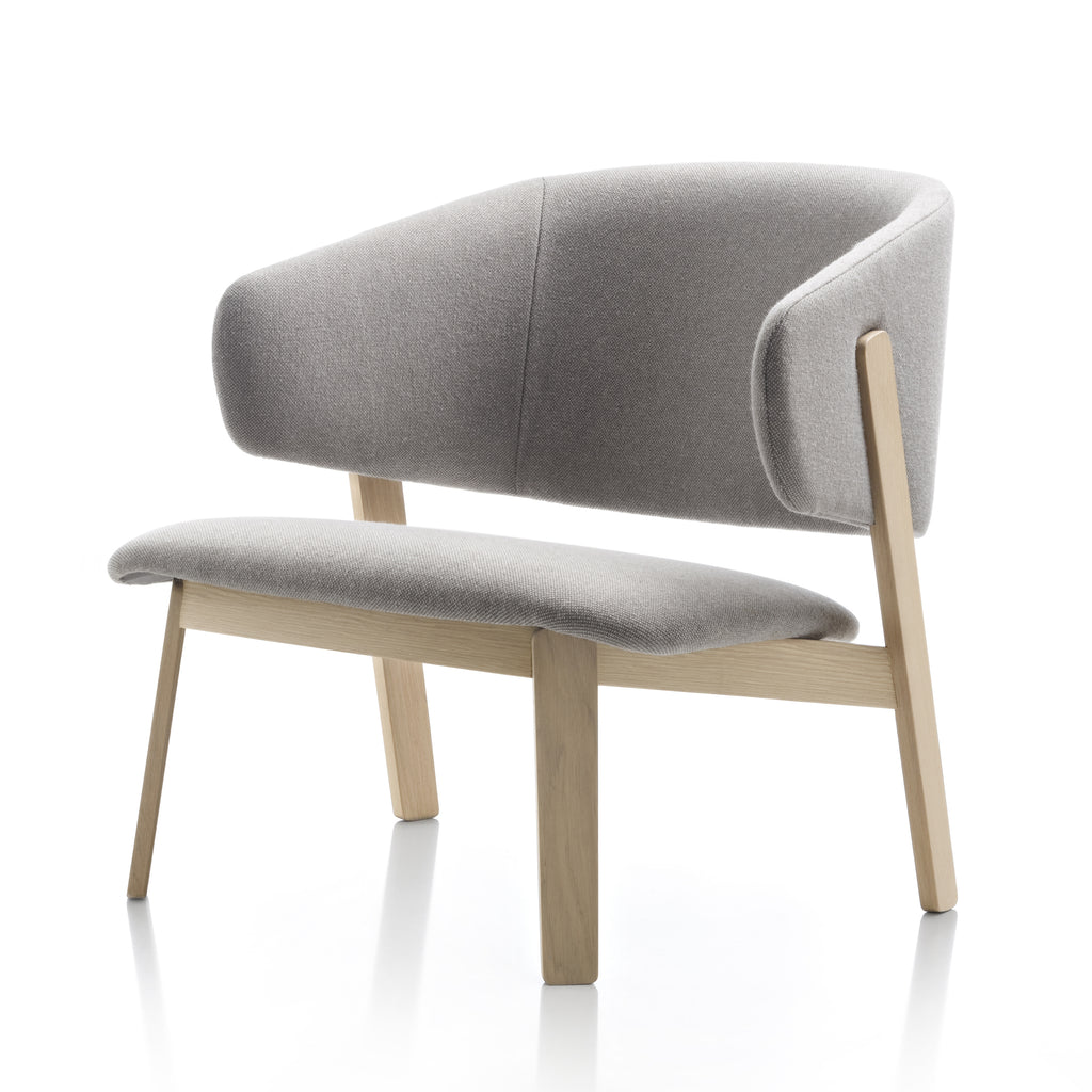 Inspired by the principles of Scandinavian design, the Wolfgang Lounge Chair by Huppe is part of a greater collection of minimalist, functional furnishings. The solid, white oak frame is characterized as unpretentious with a curved back that wraps around to the sides to form the arms, and a unique seat cushion that seems casually deposited on the seat. Natural-colored upholstery options and white oak finishes offer a range of complementary selections for your living space.