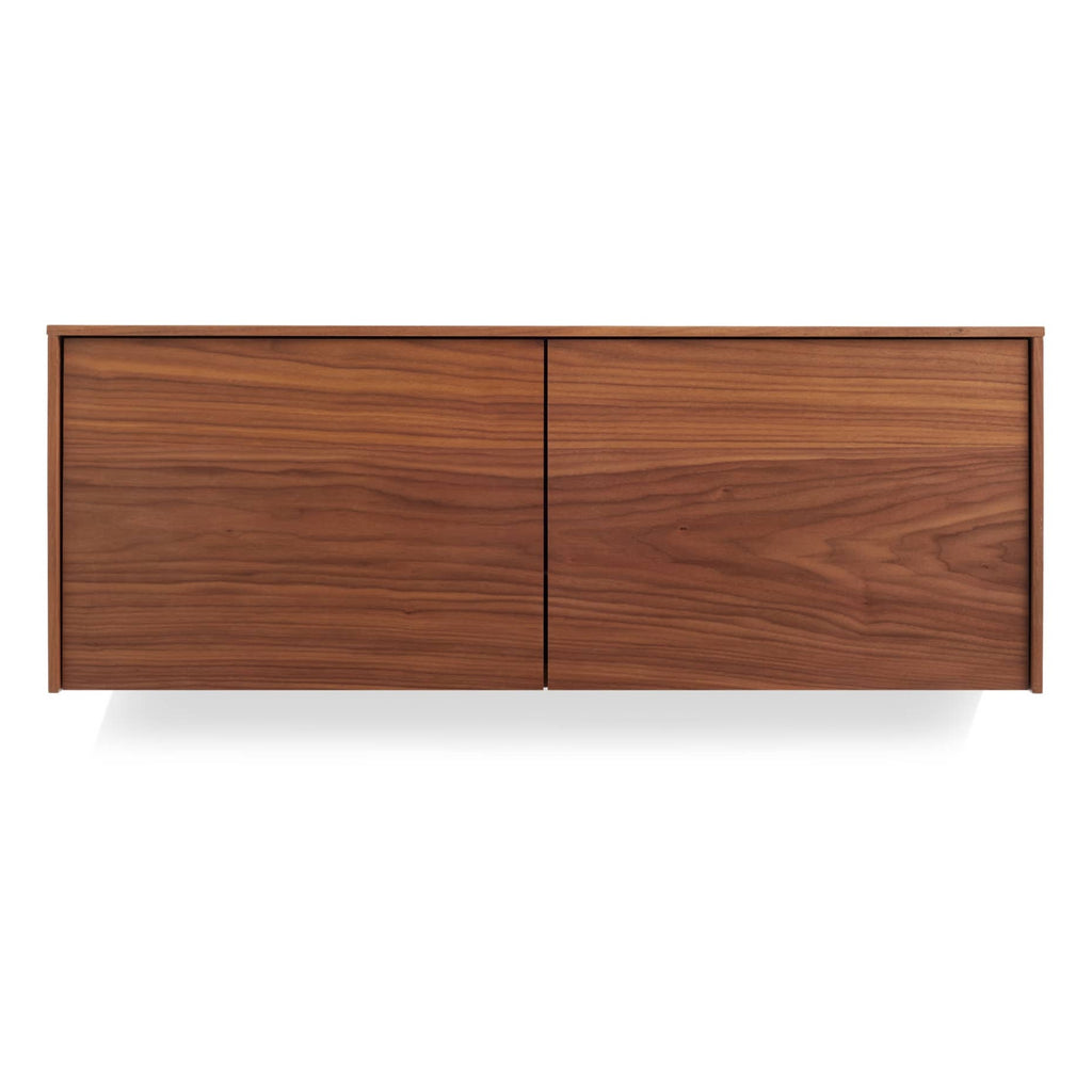 The Blu Dot Wonder Wall Cabinet is a handsome wall-mounted storage unit that has the look of a custom designed cabinet. Beautifully finished in walnut veneer, this modern cabinet has two doors and an adjustable interior shelf that provides ample storage without the need for floor space. Designed to be mounted alone or to be paired with companion Blu Dot Wonder Wall desk or drawers, this Blu Dot design is a versatile option for home office, kitchen, bedroom, and virtually any other space.