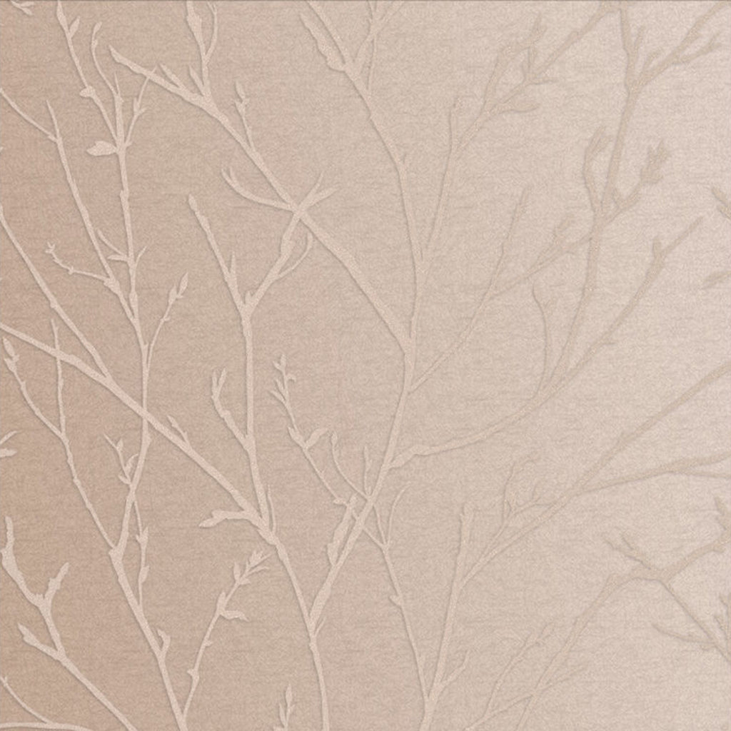 Woodland Spring's light reflecting beads adorn natural silhouettes of trailing branches, highlighting how the natural sunlight creates shine and shimmer. This stylish and elegant wallpaper is beautifully finished on a luxurious high shine rose gold metallic paper in a sophisticated, delicate color palette, ideal for all four walls. This wallcovering is a specialist beaded product and therefore needs careful and considered application.