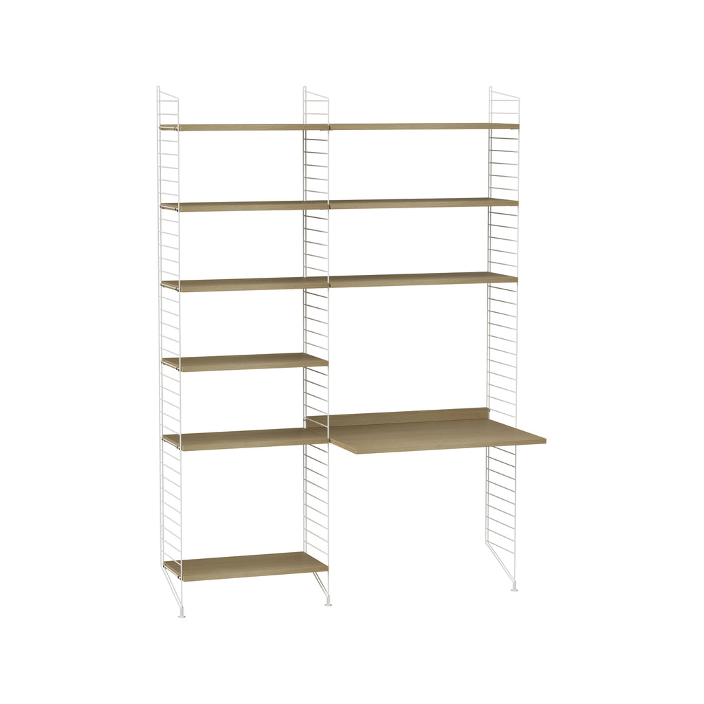Introducing the Workspace Shelving Unit from String Furniture, the perfect compact solution for cubicles and home offices alike. This floor-mounted, one-section combination features three shelves, plus a work desk, delivering a tasteful and stylish answer to your space-saving needs. Whether you're in the office or the living room, make sure you have the best working environment possible with this sleek storage design.
