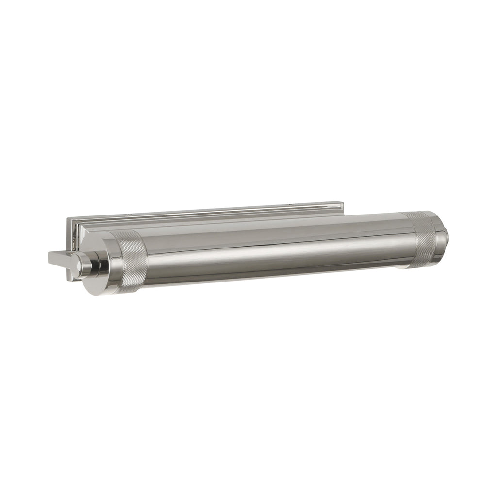 The Wyatt Wall Sconce from Robert Abbey captures the refined elegance of 1950s design with a sleek, tubular housing set before a concealed rectangular backplate. Supported by angular arms and accented with knurled endcaps, its polished surfaces offer a sophisticated texture. Warm incandescent bulbs emit a glare-free, fanned ambient glow downward, brightening your walls with a timeless, classy aesthetic that enhances any space with subtle sophistication.