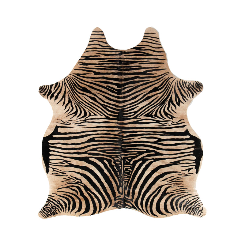 Bring personality to your space with this authentic cowhide rug, featuring a bold, screen-printed zebra pattern. Processed with an eco-friendly, chromium-free tanning method, each hide is truly one-of-a-kind and will feature unique variations in size, shape, and color.