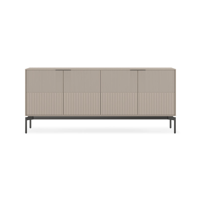 The Zig 4-Door Storage Credenza from BDI makes a bold entrance with its striking, molded fluted doors. This design brings a unique, architectural texture to modern living spaces while concealing a highly adaptable interior. This credenza balances confident style with smart utility, including soft-close doors and hidden cord access for everyday ease.